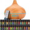 About this item 【Diffuser with Essential Oils Set】: The essential oil set includes our most popular wood grain essential oil diffuser (550ml upgraded version) and top 30 natural essential oils perfectly with ultrasonic oil diffuser to bring aromatic scent. 【30 Essential Oils】: TOP 30 kind natural oils(Diluted with base oil, safe for skin contact). The dark bottle will help keep the oils fresh and also guard against light degradation.No harsh ingredients, No additives,NO fillers. 【Large Capacity & Waterless Shut-Off 】 : Essence Diffuser has a 550ml capacity and uses state of the art wave diffusion technology to atomize essential oils ,which helps refresh the air, and create a comfortable environment.offers a continuous mist for 10-15 hours in a regular mode. When the waterless, it will auto shut off. So, all you need to do is turn on the device to enjoy a soothing atmosphere throughout your day. 【4 Timers & 2 Mist Modes】: Oil Diffuser built-in 4 Timers : 1H, 3H, 6H and continuous. And there are 2 options of mist for you to choose from, strong and standard mist. Just select what you want and enjoy the relax. Diffuser includes 7 ambient light modes with two intensity settings for 15 different light combinations.Both LED lights and mist can be controlled independently. 【The Perfect Gift Set】: The Aroma Vapor Diffusers can be used as Humidifier,Air aroma machine, Night Light,Great Gift. All of which promote a natural and healthy lifestyle. Diffuser humidifier with essential oils is the best gift for friends and families.