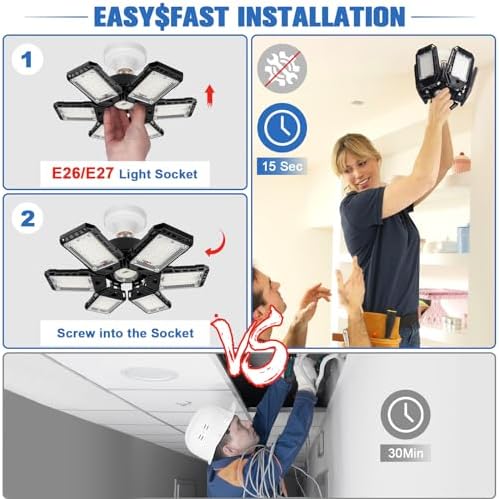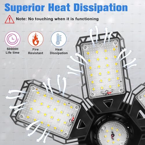 | Feature | 【Ultra Bright 18000 Lumens 】360°Super Brighter Illumination, total 180W, produce 18000 lumens. In addition, This shop light provides 6500Kdaylight source and CRI> 80Ra color rendering index. This led garage light can provide the best indoor lighting experience. |