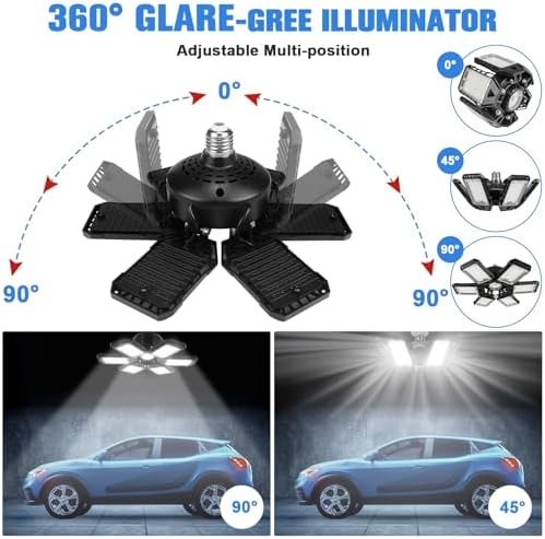 Aoretic LED Garage Lights Bulb 1 Pack -180W, 18000LM 6500K Led Shop Light with 6+1 Deformable Panels, Basement Barn Light Garage Ceiling Lights, E26/E27 for Garage, Warehouse, Shop