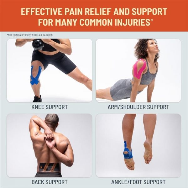 i have a evil knee pain and this helps. i bought the purple. it’s a pretty color. comes in a nice little box which is easy to throw in your bag and a guide on how to apply. breathable material.in terms of use, it’s very bipolar. i apply it the same way every time; clean, dried, typically sterilized skin. i even shave, incase that matters. some pieces peel off, some stick for days; it’s something with the adhesive, to my knowledge.the cheaper crap makes me blister with one day of use. this does not, even with multiple days of wear.id like better adhesive on this; i know these aren’t the strongest ones but i cant afford to pay 20$ every time i need to tape my knee, which is almost daily; and while this lasts, like i said, the adhesive is SO hit or miss between pieces.overall, it works. if it werent for the adhesive being weird, 5 stars. but i will be reordering this!