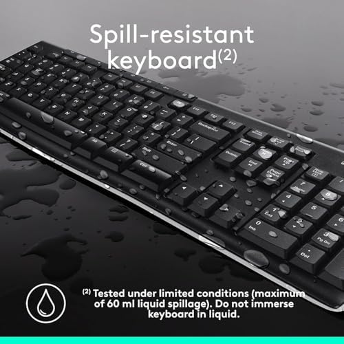 The stylish Logitech MK270 Wireless Keyboard and Mouse Combo is ideal for the home office or workplace. Ditch the touchpad for this full size keyboard and mouse. Easily connect using Logitech’s plug and forget receiver—just plug it into the USB port, and you’re ready to work. There’s no lengthy installation procedure to slow you down. When you’re on the move, the receiver stores comfortably inside the compact mouse. Both the keyboard and mouse included in this Logitech keyboard and mouse combo use wireless 2.4GHz connectivity to provide seamless, interruption-free use. Use the wireless mouse and keyboard combo within a 10 m range without keyboard lag. Work for longer with the MK270’s long battery life. The wireless keyboard with mouse can be used for up to 24 months, and the mouse for 12 months, without replacing batteries. The computer keyboard & mouse combos include 8 hotkeys that are programmable to your most used applications to boost your productivity. The wireless keyboards from Logitech are known for their reliable performance, and this logitech mk270 wireless keyboard and mouse combo for windows ensures a productive workflow. With features like the usb keyboard and mouse combo and keyboard and mouse wireless logitech design, it fits well for those looking to enhance their office setup. Enjoy a wireless keyboard and mouse ergonomic experience with this reliable setup.