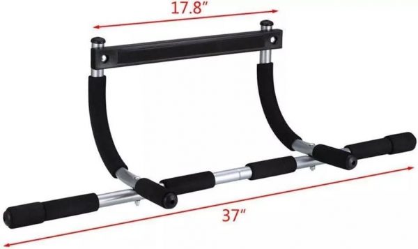 About this item Size: 37″ x 18.8″ x 21.6″ Uses leverage to stay in place – no screws required For pull-ups, push-ups, chin-ups, dips, crunches, and more Adjusts to fit most door frames Sponge cover design makes it comfortable to grip Easy to install, sturdy and durable Maximum load weight: 150KG