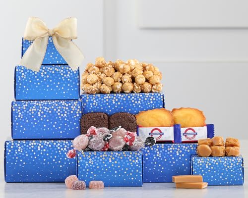 About this item DELICIOUS AND LOVELY: This colorful and lovely gift tower is filled with sweet treats that convey your best wishes. FREE PERSONALIZED GIFT MESSAGE: Personalized Messages are also available to share your customized sentiments for every situation that can arise. This heart-warming option has been included to allow you to share your custom created message with your gift recipient PRIME PRESENTATION: The Ultimate in Gifting. We have taken gift-giving to a complete new level. Each detail in the package is designed to make your gift-giving even more thrilling and extra delicious. Our beautiful presentation will make this gift a memorable one 30+ YEARS OF SENDING GIFTS: Wine Country Gift Baskets is a high quality brand that your loved one or friends will appreciate; our gift baskets are hand assembled and include some of the top brand named ingredients that we know you’ll love SOMETHING FOR EVERYONE: friends, family, military soldiers, students, co-workers, teens, toddler, young kids, boyfriend, girlfriend, friend, boy, girl, son, daughter, yourself,husband, wife, grandchild, grandson, granddaughter, grandmother, grandfather, pop, grandma, grandpa, niece, nephew, aunt, uncle, cousin, acquaintance, classmate, loved one, someone special, fiancé, buddy, boss, teacher, partner, business, and more ALL OCCASION GIFT: office, meetings, schools, college, university, on-the-go snacks, lunch or outing events, movie, movies, birthday, birthdays, get well soon, abroad, car driving, road trips, picnics, party, parties, after surgery, healing, finals week, deployment, summer, camp,sick, celebrate, graduation, sympathy, love, thank you, appreciation, congratulations, anniversary and more A GREAT GIFT FOR ANYONE AND ANY OCCASION: Perfect for sharing with family and friends, our snack gift is ready to be enjoyed straight out of the box